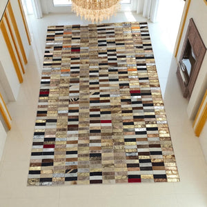 Enhance your space with the natural elegance of the Multicolor Cowhide Rug. This nude color patchwork rug, crafted from genuine calfskin, offers a soft and earthy palette that complements country homes and modern interiors alike. With its authentic cow skin texture and high-quality craftsmanship, this rug provides a cozy yet sophisticated addition to living rooms, bedrooms, or offices. Durable and unique, it embodies timeless design and natural beauty, making it a perfect centerpiece or accent for any room.