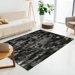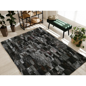 Black Sealskin Patchwork Rug – Handmade Luxury Modern Area Carpet, Custom Size Area Carpet