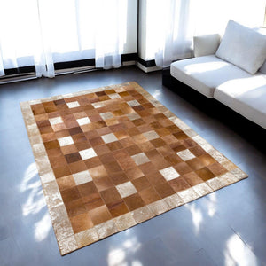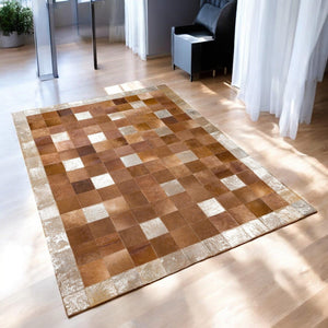 Natural Cowhide Patchwork Rug, Brown Cowhide Floor Rug