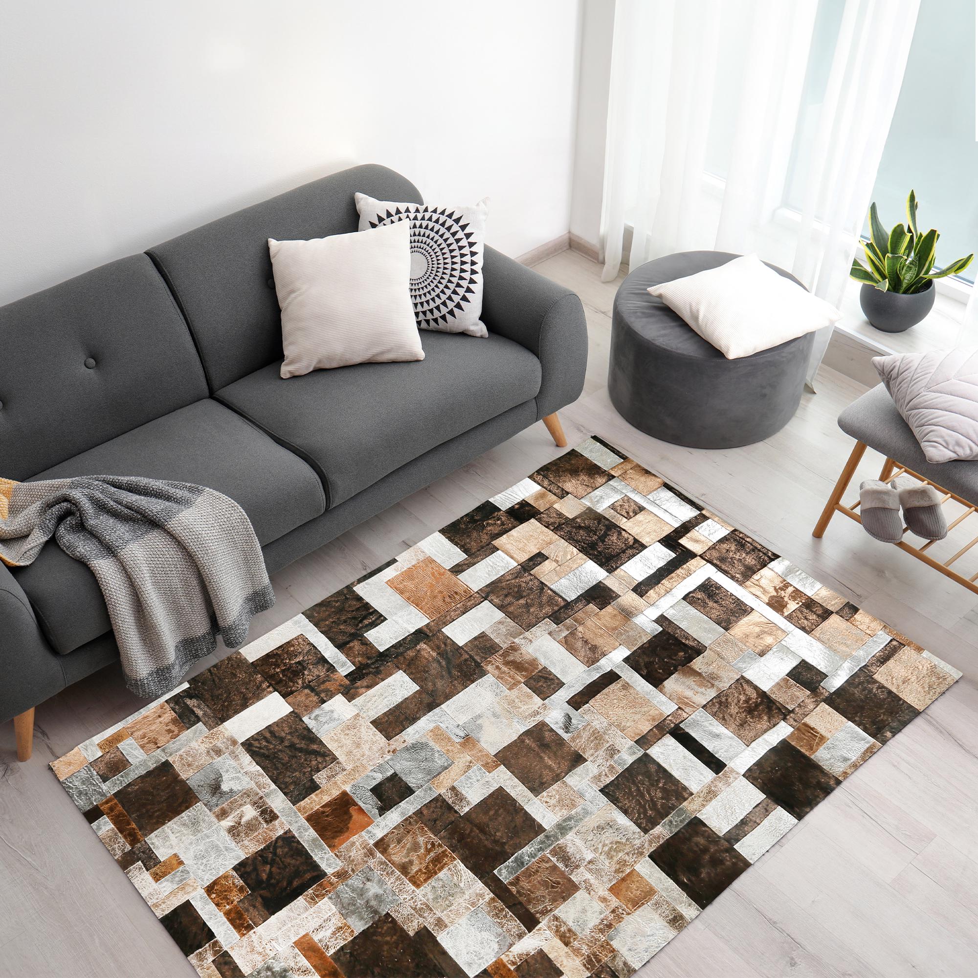 Transform your home with the timeless charm of the Natural Cowhide Patchwork Rug, a handcrafted masterpiece that combines luxury, durability, and rustic elegance. This multicolor calfskin floor rug features a striking patchwork design, blending natural black, brown, and beige tones to create a warm and inviting aesthetic. Whether you're furnishing a living room, bedroom, or office, this cowhide rug adds a unique touch of sophistication and natural beauty.