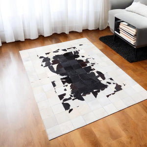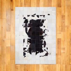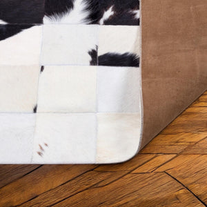 Enhance your house with the timeless elegance of our Natural Cowhide Patchwork Rug. This white and black calfskin area rug is crafted from genuine cowhide leather, offering a luxurious texture and unmatched durability. The natural cow skin pattern creates a modern aesthetic, making it an excellent addition to contemporary, rustic, or minimalist interiors.
