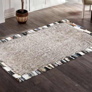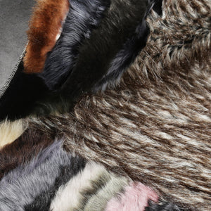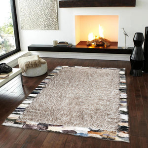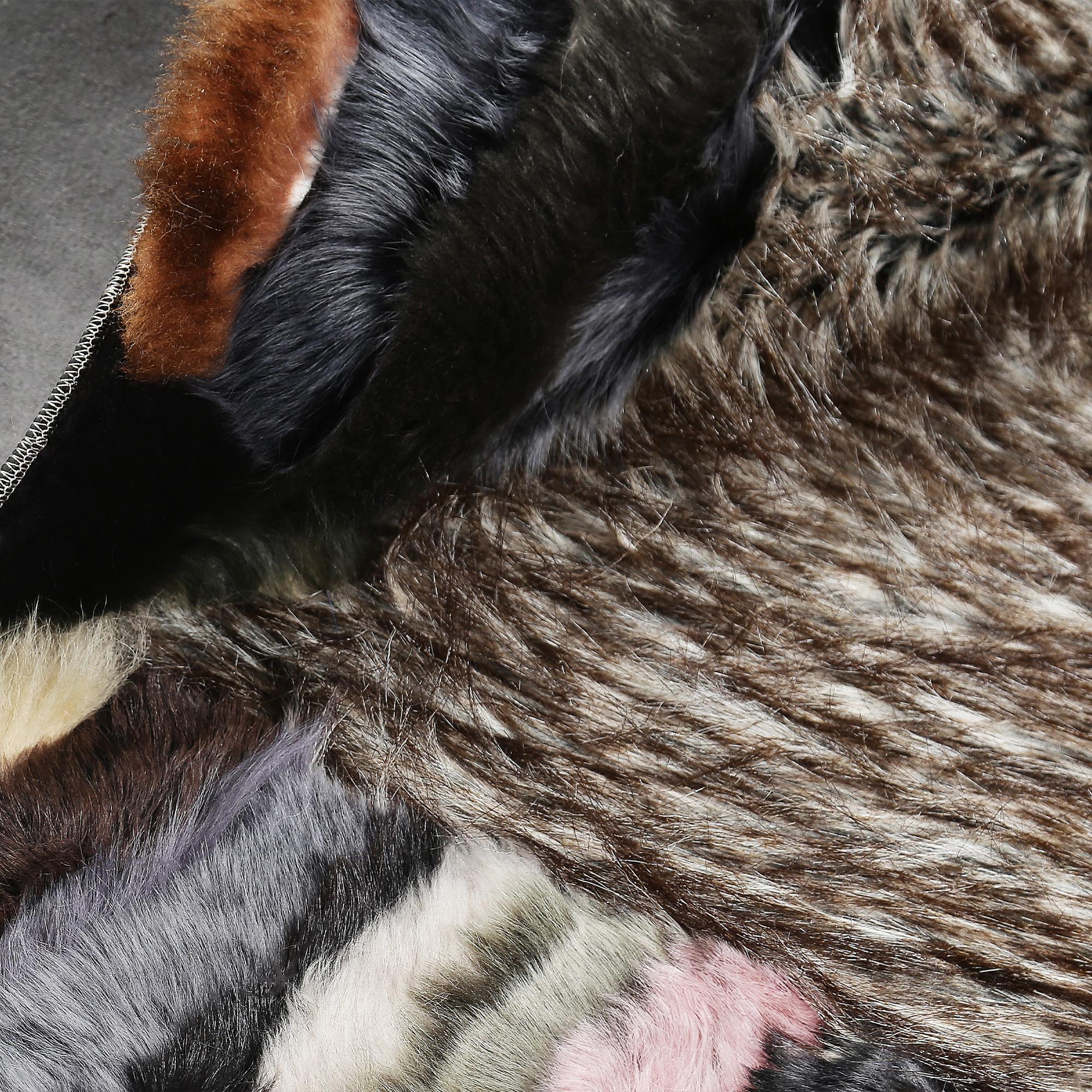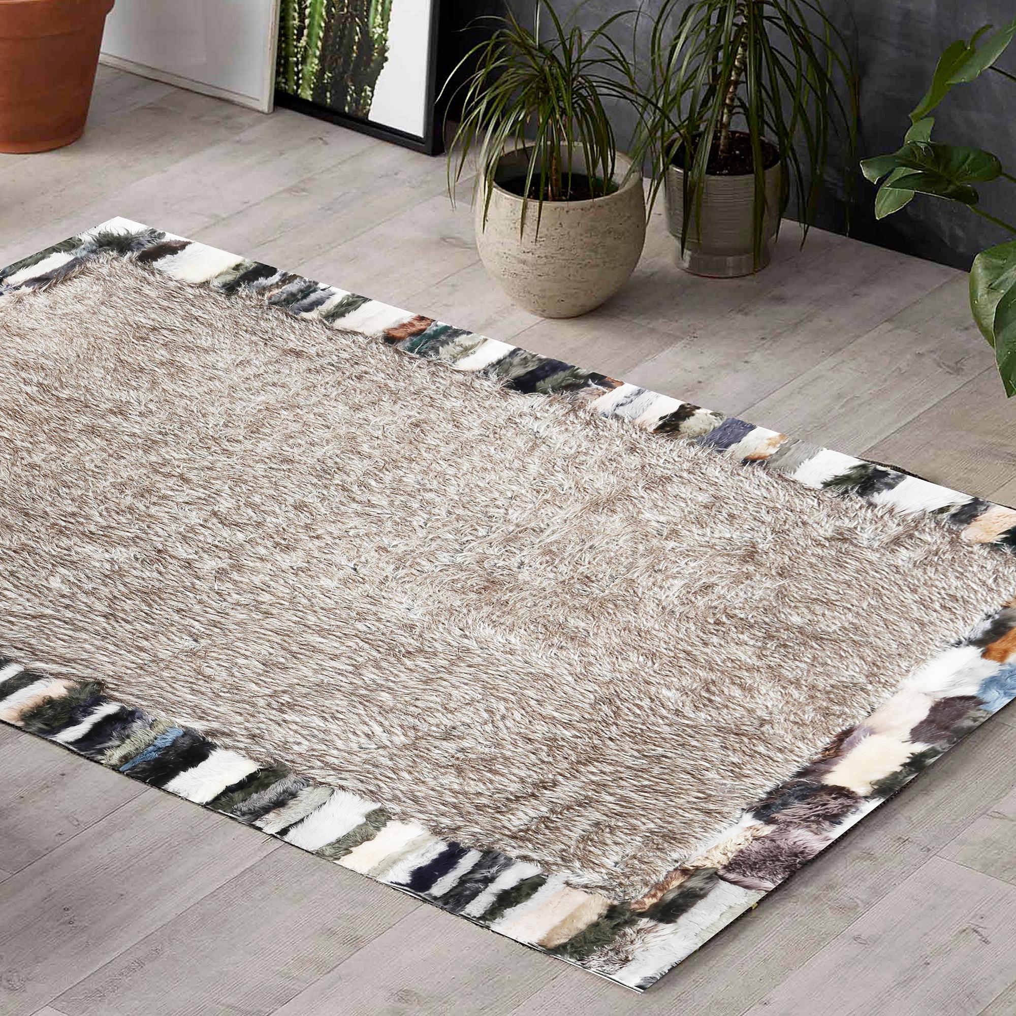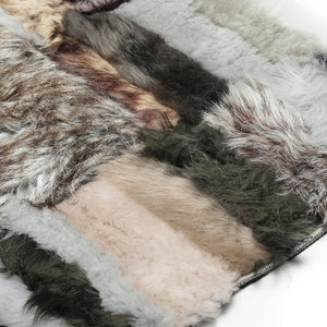 Sheepskin Patchwork Area Rug – Handmade Fluffy Sheepskin Carpet with Multicolor Border, Soft Cozy Custom Size Rug for Living Room & Bedroom
