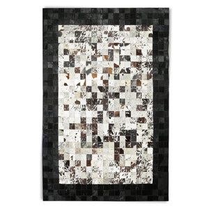 Redefine your interior with the timeless elegance of this Real Cowhide Patchwork Black Edged Carpet. Designed to bring together natural textures and bold contrasts, this multicolor boho rug is an exquisite addition to living rooms, bedrooms, or any space in need of a touch of luxury.