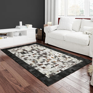 Cowhide Patchwork Rug, Handmade Genuine Leather Carpet