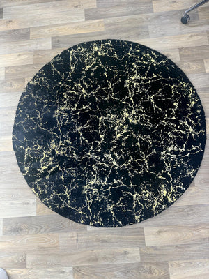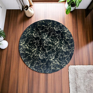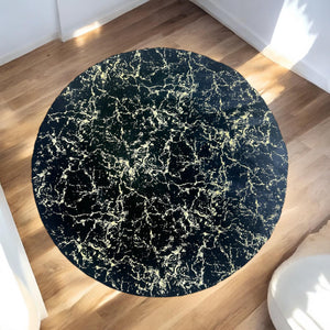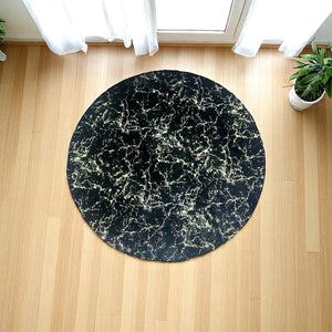 Round Black Marble Plush Rug, Soft Circle Carpet for Living Room