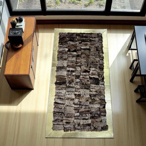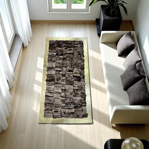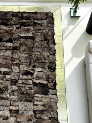 Crafted from genuine sheepskin, this luxurious rectangular patchwork rug features natural brown wool textures framed with a shimmering gold border. Soft, warm, and visually striking, it adds elegance and coziness to any interior, from living rooms to bedrooms. Each piece is handmade with care for lasting quality.