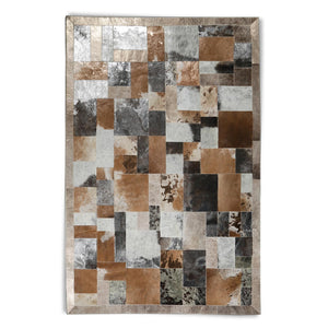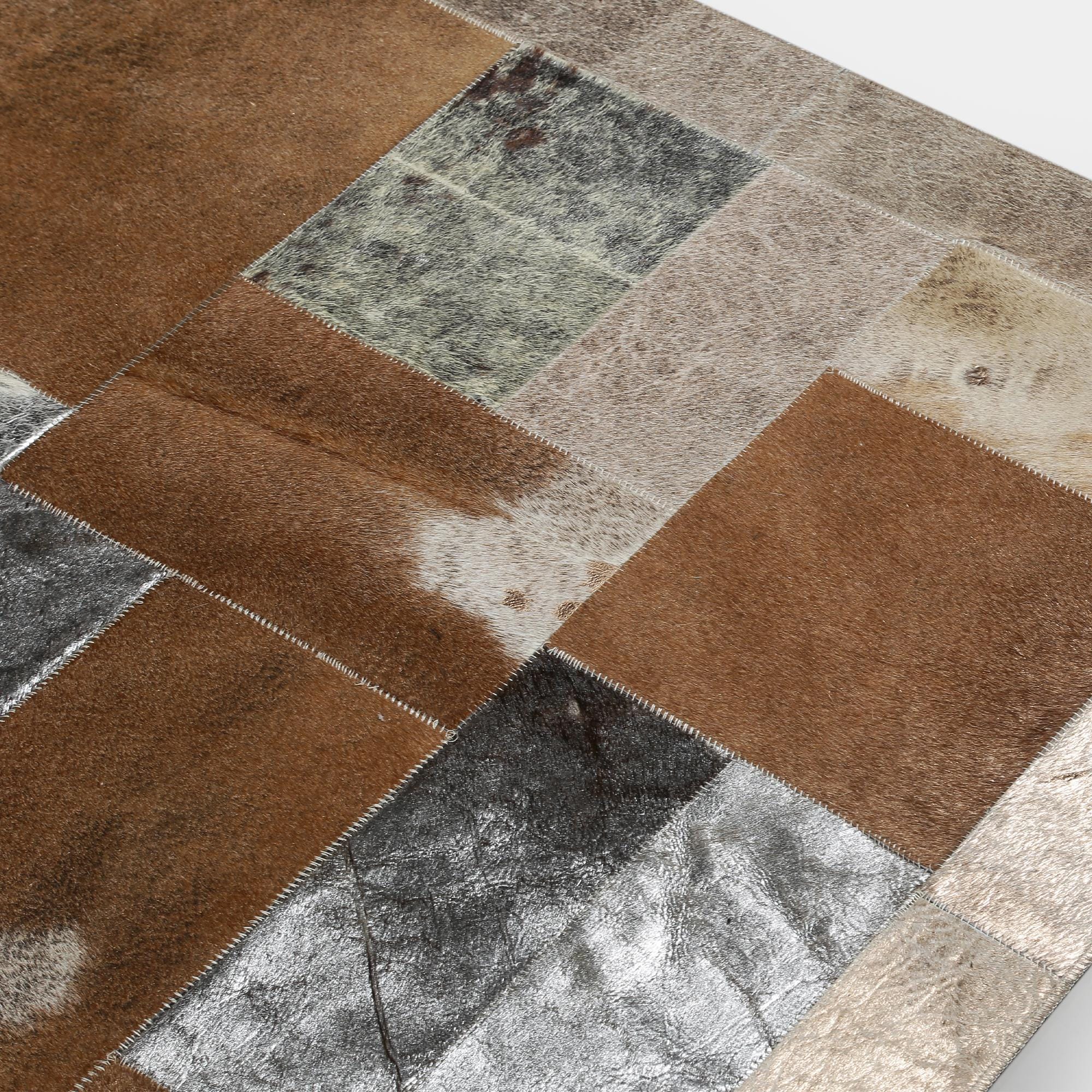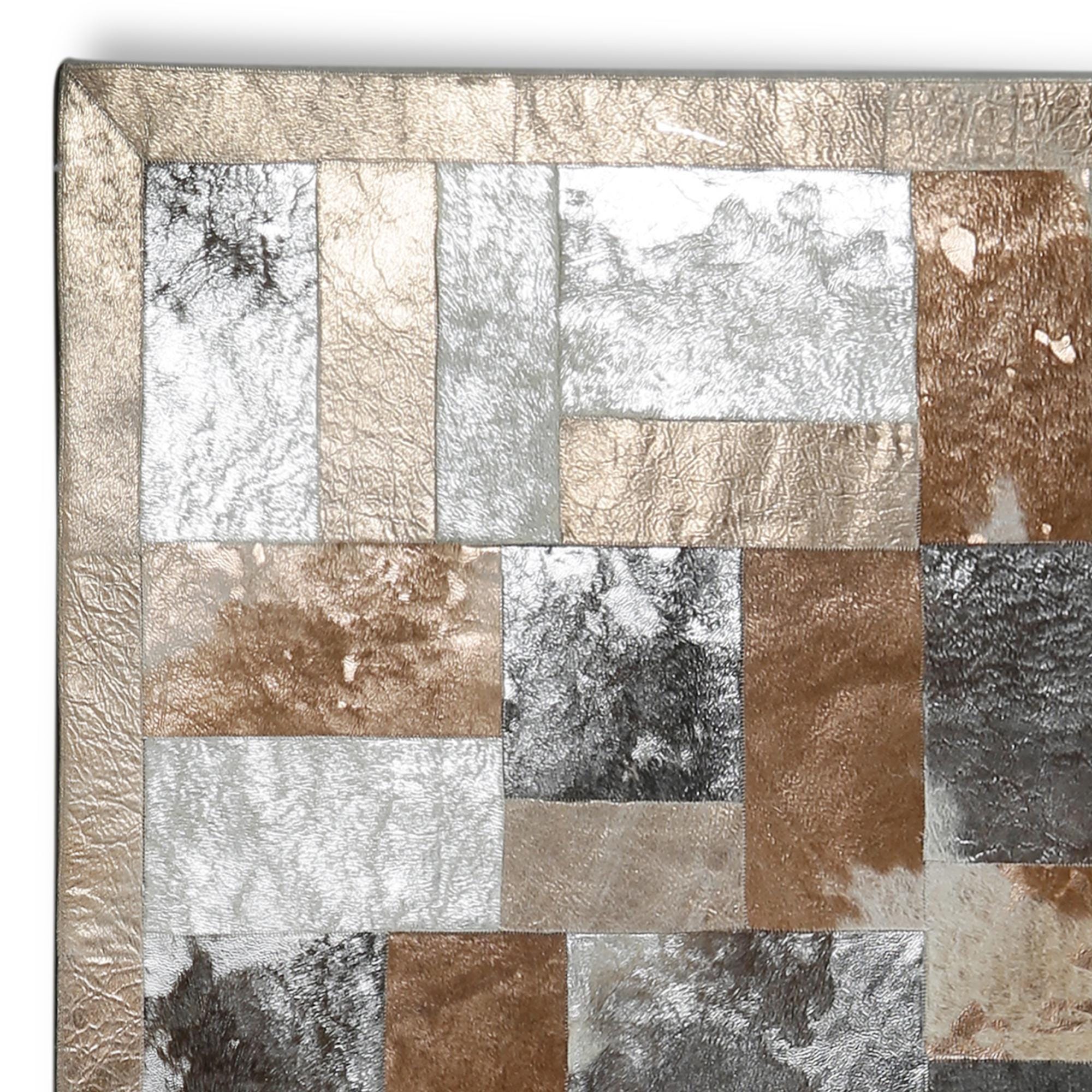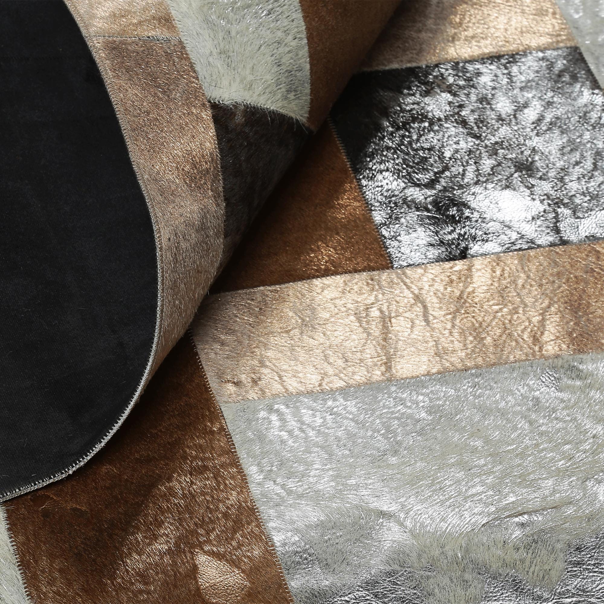 Silver and Bronze Leaf Natural Cowhide Rug, Handmade Leather Carpet