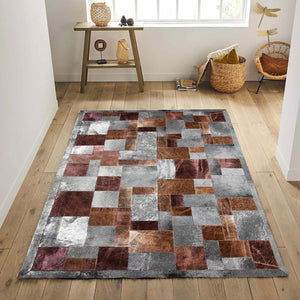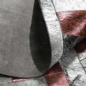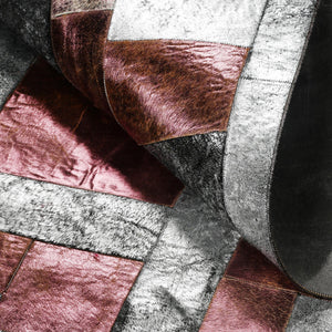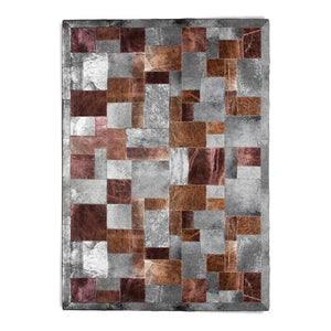 Silver & Bronze Brick Pattern Patchwork Cowhide Rug