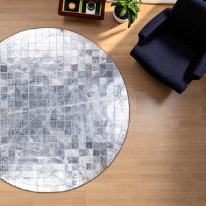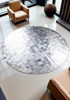 Round Silver Cowhide Rug, Handmade Patchwork Carpet