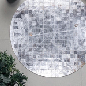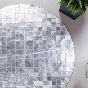 This Round Grey Cowhide Rug exudes contemporary elegance with its subtle silver and ash tones. Handcrafted from 100% genuine cowhide, it showcases a refined patchwork design that reflects natural light beautifully. The soft, smooth leather texture adds a luxurious touch to any space, making it both stylish and durable.