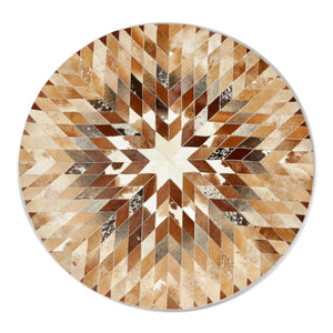 Elevate your interior decor with this Star Design Cowhide Round Rug, a perfect blend of rustic charm and modern sophistication. Featuring a striking star on the center in white, this genuine calfskin rug is crafted from high-quality cowhide leather. Its soft texture and durable nature make it ideal for living rooms, bedrooms, or as a unique centerpiece for any room. The earthy tones of brown and tan add warmth to your home, making it a thoughtful housewarming gift or an elegant addition to your space.