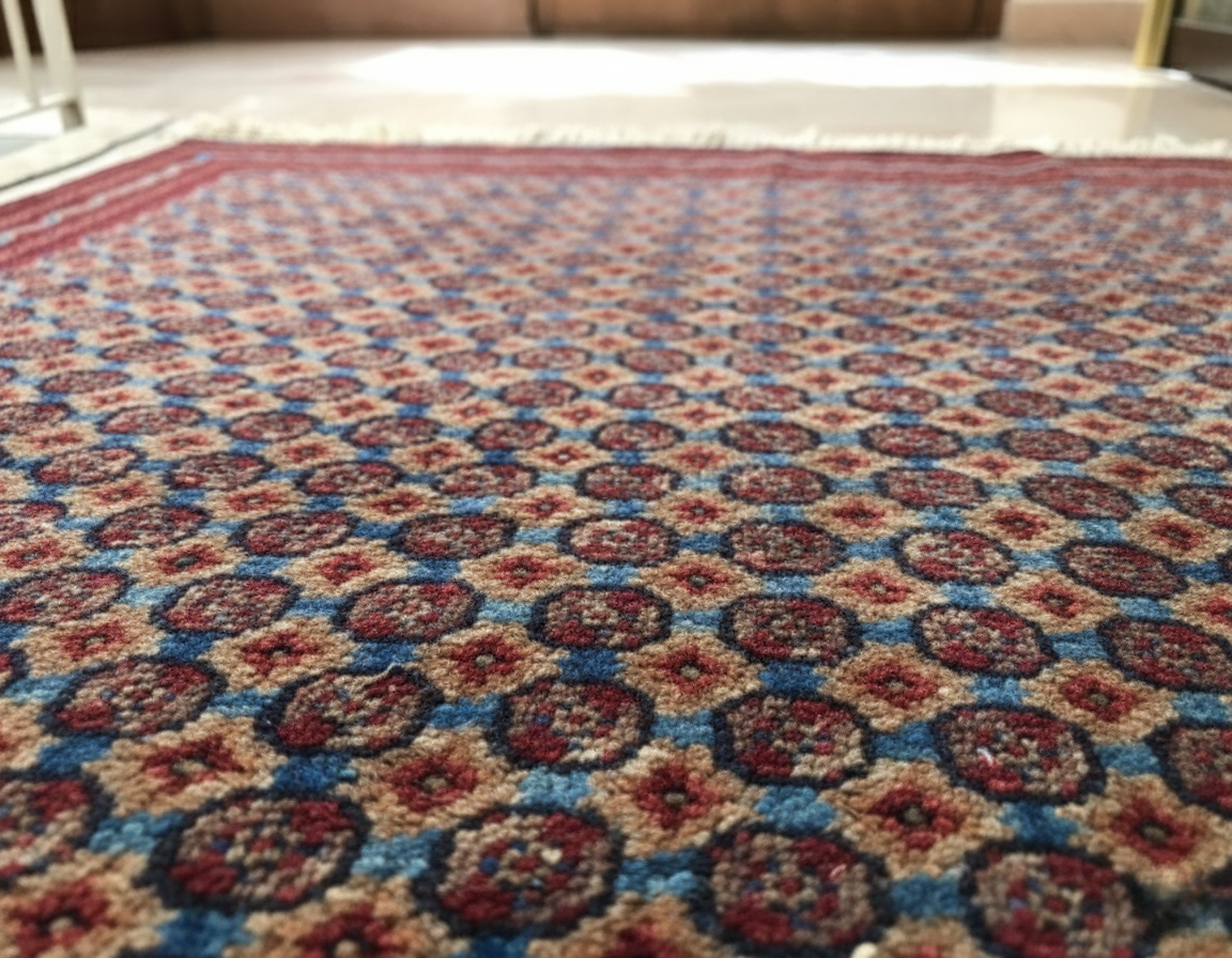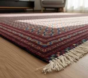 • Design: Classic repeating oriental pattern with detailed red and navy borders.