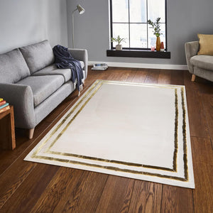 Add a sleek and modern touch to your interior with this White Plush Rug. Crafted from premium plush fabric, this rug features a minimalist cream surface intersected by shimmering silver lines that create a geometric and elegant look. Its soft texture and contemporary design make it a perfect centerpiece for living rooms, bedrooms, or offices.