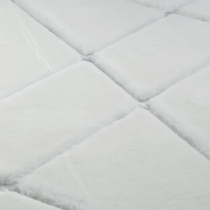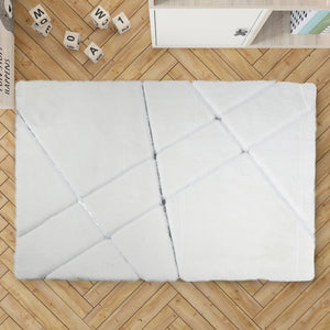 Add a sleek and modern touch to your interior with this  White Plush Rug. Crafted from premium plush fabric, this rug features a minimalist cream surface intersected by shimmering silver lines that create a geometric and elegant look. Its soft texture and contemporary design make it a perfect centerpiece for living rooms, bedrooms, or offices.