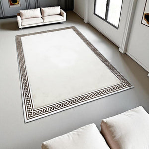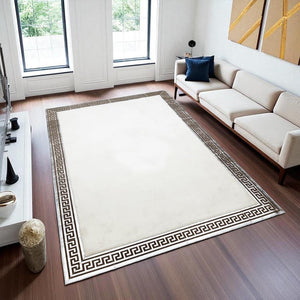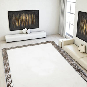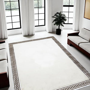 White Plush Rug, Greek Border Soft Area Rug, Modern Non Slip Carpet