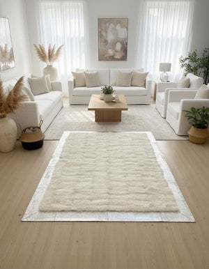 White Tuscan Rug, Geometric Patchwork Area Rug, Natural Leather Carpet